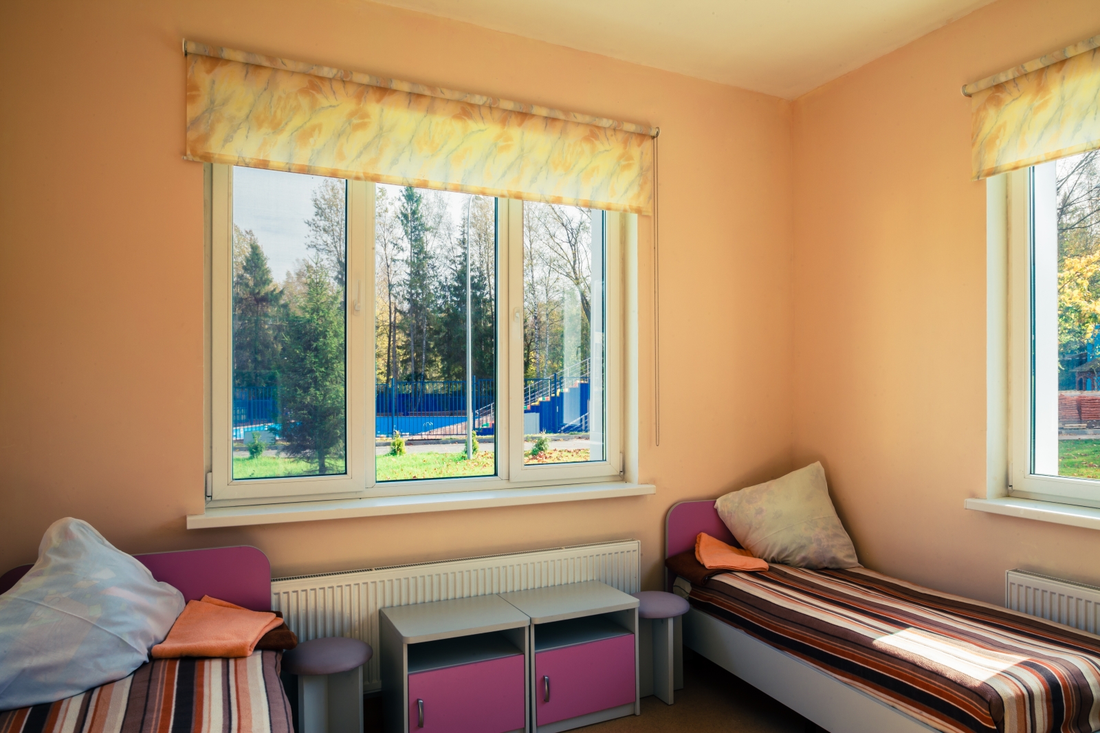 Размещение: Дети размещаются в 2х местных номерах со всеми удобствами в номере. В каждой комнате - удобные кровати, шкаф для вещей с отделениями для каждого ребенка, тумбочки. Все номера с евроремонтом.